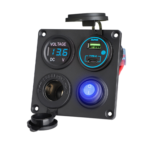 Factory Four-in-one Voltmeter USB+Type-C Super Fast Charging ON-OFF Switch Combination Switch